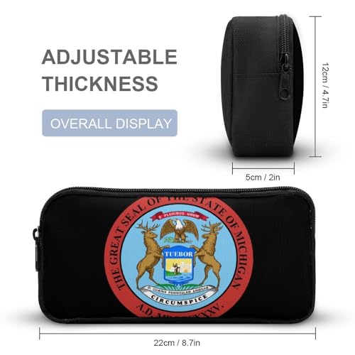 Seal of Michigan 3 Pcs Backpacks Set Combination 16“ Travel Backpack Portable Lunch Bag Pencil Case for Unisex 5