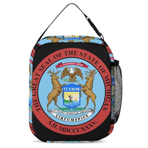 Seal of Michigan 3 Pcs Backpacks Set Combination 16“ Travel Backpack Portable Lunch Bag Pencil Case for Unisex 4