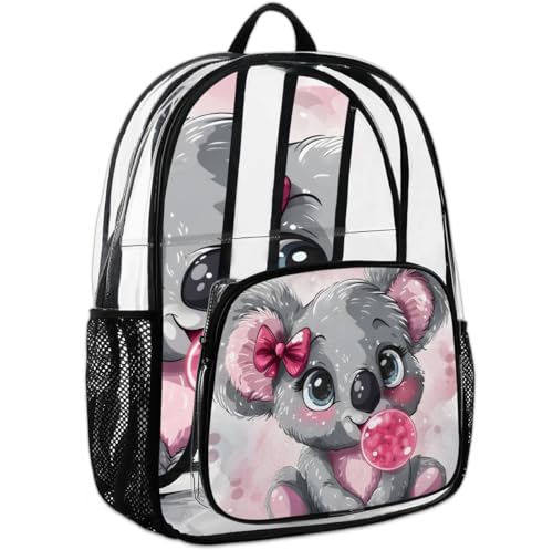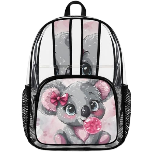 HOT ! Cute Hand Painted Koala Clear Backpack Stadium Approved PVC Backpacks for Adults Heavy Duty Clear Bag for Work Security Travel College