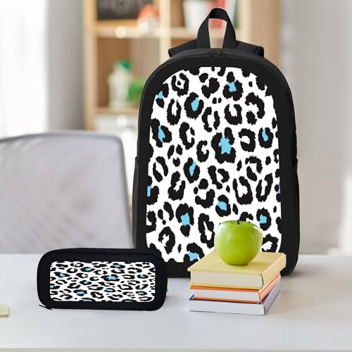 3PCS Backpack for Women Men With Lunch Box Pencil Bag 17 Inch Lightweight Adjustable Strap Back Pack 3 In 1 Set Fresh Animal Leopard Casual Daypack Unisex fit Travel Work Camping 3