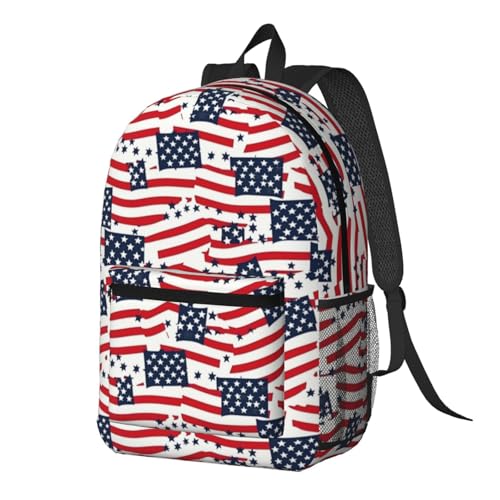American Flag Fashionable Daypack 17 Inches Zippers Backpack Double Shoulder Bag for Women Men 7