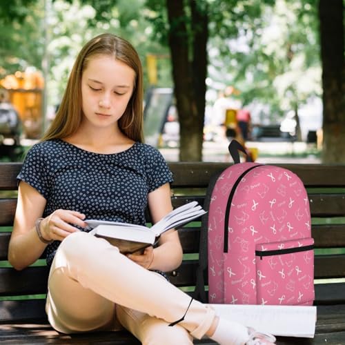 Breast Cancer Awareness Fashionable Daypack 17 Inches Zippers Backpack Double Shoulder Bag for Women Men 6