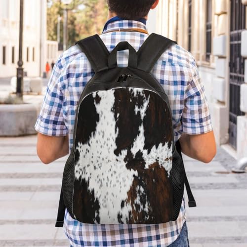 Full Framed Spotted White Brown Cow Skin Texture Backpack Simple Leisure Travel Backpack Outgoing Daypack 16 inch 2