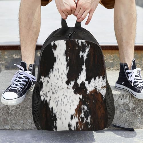 Full Framed Spotted White Brown Cow Skin Texture Backpack Simple Leisure Travel Backpack Outgoing Daypack 16 inch 6