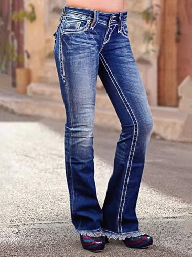 HOT ! Flamingals Women's Mid Waist Double Button Raw Hem Straight Leg Jeans