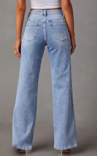 • Highlight for Wide Leg Jeans Denim Pants: Zip up front/ 2 Side pockets and 2 rear pockets/ Patchwork jeans style/ Wide leg jeans bell bottom jeans/ High waisted flare jeans for women/ Western vintage style/ Bootcut stretch long trouser jeans/ Wide legged jeans/ Solid color- blue jeans denim pants