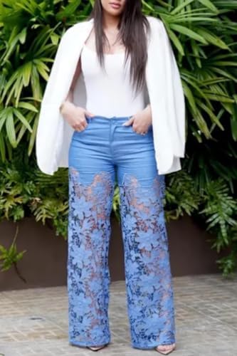 More information about Women's Lace Patchwork Hollow Jeans Floral High Waist Wide Leg Denim Pants Lace Jeans