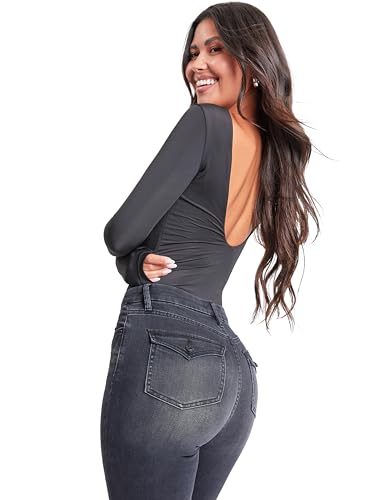 • These jeans feature an ultra-high-rise waistband, which sits above the natural waistline, helping to smooth and shape the midsection while offering a secure and comfortable fit.