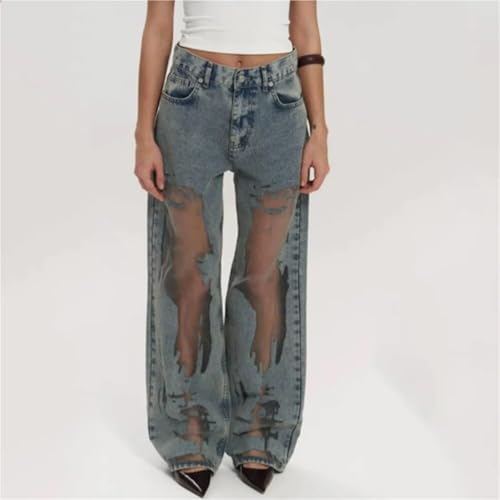 HOT ! 2025 Women's mesh Patchwork Printed Jeans Spicy Slim Casual Straight-Leg Pants Hip-hop