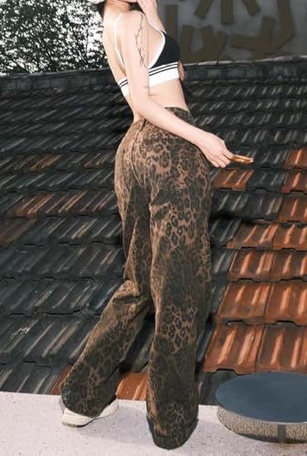 HOT ! Y2k Jeans Cheetah Print Jeans Oversized Wide Leg High Waisted Cargo Pants Leopard Print Pants for Women
