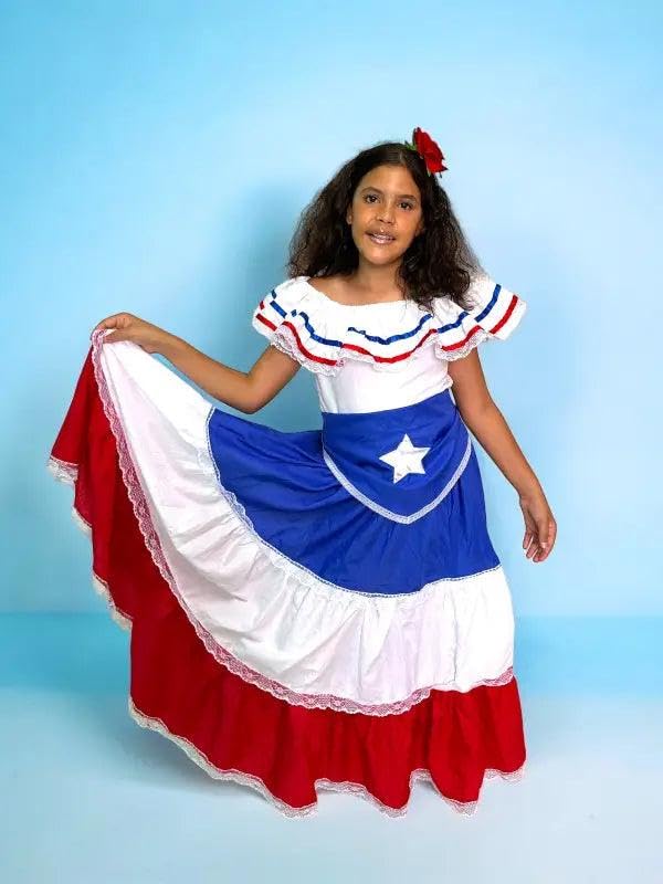 Puerto Rican Traditional Dress for Girls with Flag & Star Belt 1