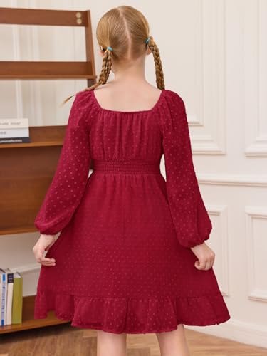 Haloumoning Girls Long Sleeve Dress Kids Ruffle Tiered Dress Swiss Dot Flowy A Line Dresses 5-14 Years 4