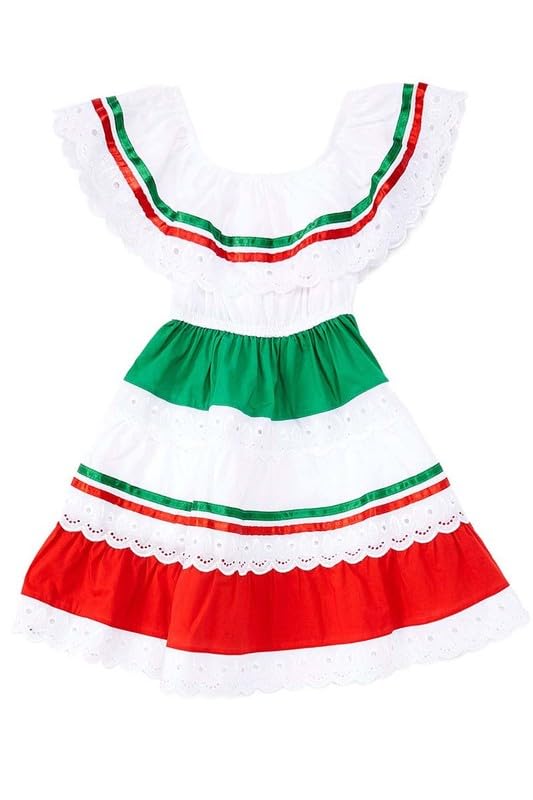 Girl's Traditional Mexican, Central America, Birthday, Cinco De Mayo, Cultural Fiesta Dress with Lace & Ribbons Trims 1
