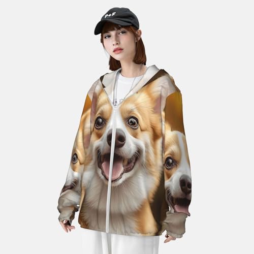 • UV Protection: Our Cute Corgi long sleeve sun shirts features cutting-edge UPF 50+ technology, effectively blocking UV rays to ensure robust sun protection during your outdoor adventures. Designed with a hood to protect the neck, and other sun-exposed areas. Ideal for extended outdoor activities