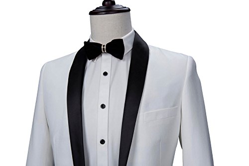More information about Mens White with Black Shawl Lapel Slim Fit Dress Suit Set Single Breasted Blazer Jacket Pants Tux