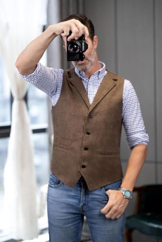 More information about Solove-Suit Mens Vintage Tweed Suit Vest Notch Lapel Dress Waistcoat Western Cowboy Vest
