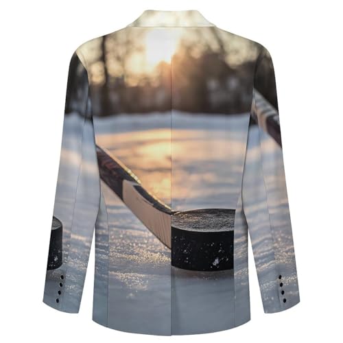 Hockey Puck And Stick Sliding Across The Ice Men's Suits Business Formal Suit Dress Print Jackets Casual Wedding Party Coat 4
