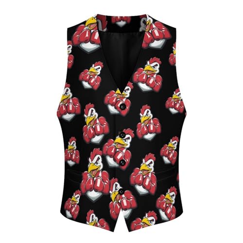 Muscular Rooster Fighting Cock Suit Vest for Men Waistcoat Dressy V Neck Button Down Sleeveless Business Jacket Coat 1