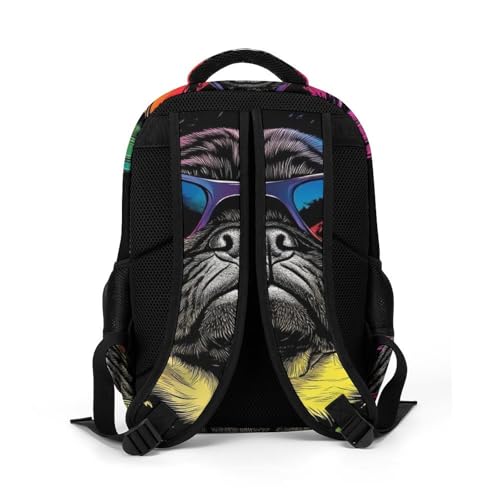Casual Backpack for Unisex Adult, Novelty DJ Pug Black Large Capacity Backpack for Daily Use, Portable Shoulder Bag for Women Men 1