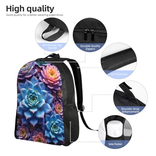 HOT ! Comfort Fit Unisex Close Up of Bunch of Colorful Succulents Backpack Gre Durable Daily Commute Travel Adventures 16 in