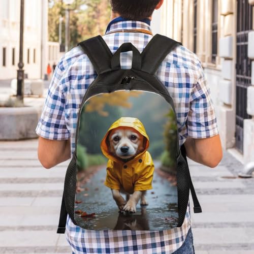 Comfort Fit Unisex Dog in Yellow Raincoat in Puddle Backpack Durable Daily Commute Travel Adventures 16 Inch 1