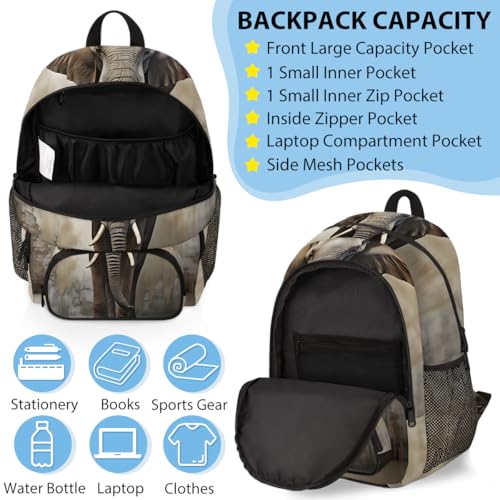 TropicalLife Grey Elephant Backpack with Lunch Box Set, Back Pack and Lunch Bag Grey Elephant Waterproof Casual Daypack Bag for Work Travel 1