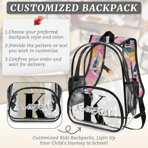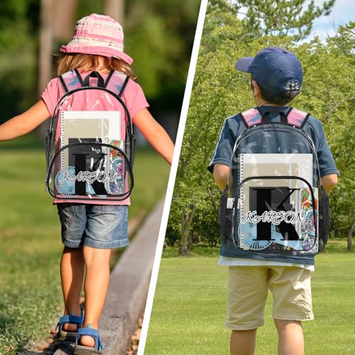 • PERSONALIZED CLEAR BAG: Each clear backpack strap is printed with exquisite patterns. Various patterns are available for you to choose from. Please click the "Customize Now" button and enter the name you want to customize