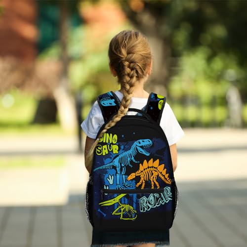 Kids Backpack for Teens Girls Boys, Dinosaur Skeleton Kids Cute Green Dino Water Resistant Child Bookbag School Bag with Adjustable Padded Straps 3