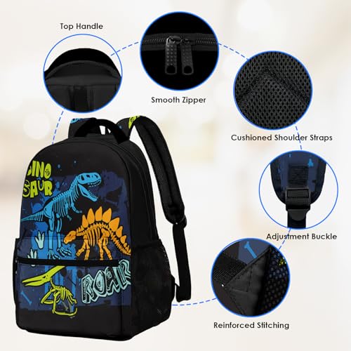 More information about Kids Backpack for Teens Girls Boys, Dinosaur Skeleton Kids Cute Green Dino Water Resistant Child Bookbag School Bag with Adjustable Padded Straps