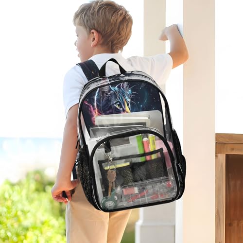Space Starry Cat Clear Backpack Heavy Duty See Through Transparent PVC BookBag for Kids Boy Girl School Work 1
