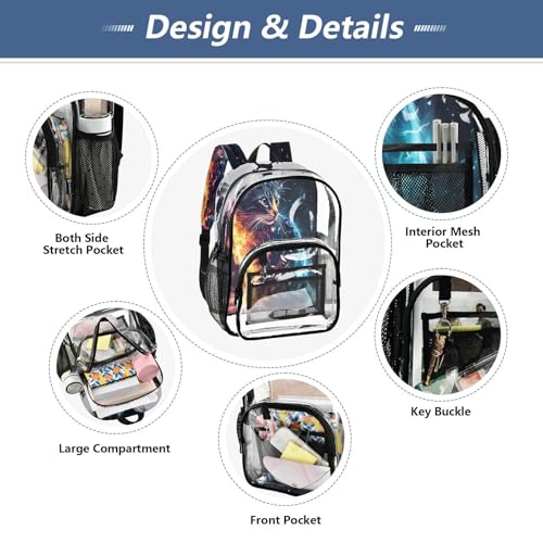 More information about Space Starry Cat Clear Backpack Heavy Duty See Through Transparent PVC BookBag for Kids Boy Girl School Work