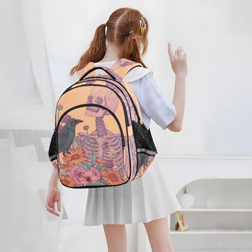 Skull Skeleton Bird Flower Backpack for Kids 8-14 Years Boys Girls School Bookbag Daypack M 202b5506 5