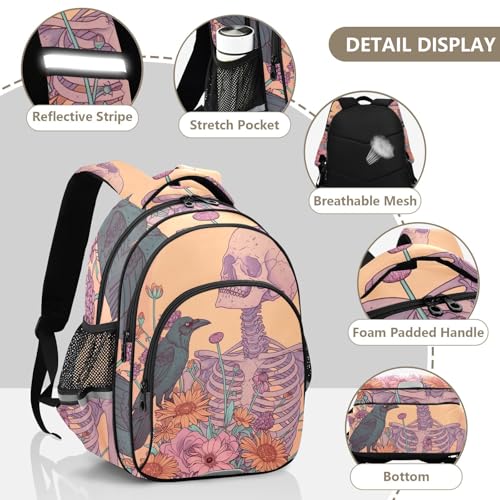 Skull Skeleton Bird Flower Backpack for Kids 8-14 Years Boys Girls School Bookbag Daypack M 202b5506 7