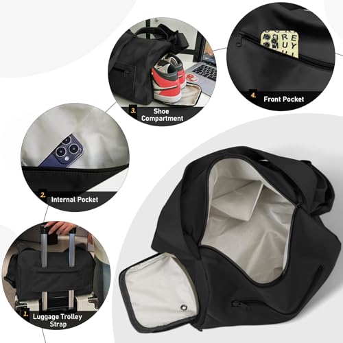 • MULTI-POCKET DESIGN: gym bag is designed with multiple pockets, not only front & back pockets, but also an internal compartment for cell phone, wallet, keys, lipsticks and other personal items. There is also a luggage trolley strap for travel