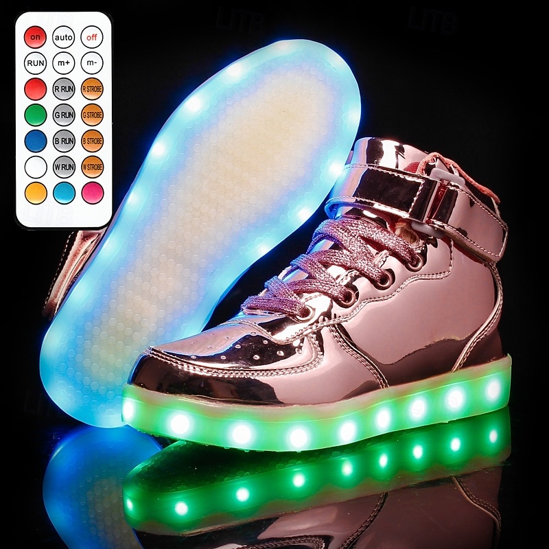 Boys' and Girls' Gold LED Light-Up High-Top Sneakers – USB Rechargeable Luminous Shoes for Parties & Performances 23