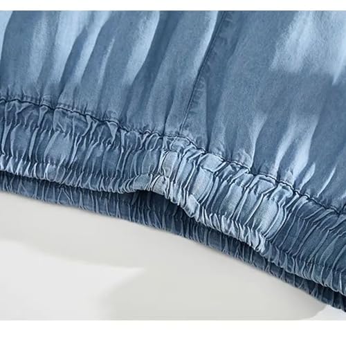 Women's Tencel Jeans High Elastic Waist Thin Loose Denim Pants Casual Drawstring Straight Jeans 6