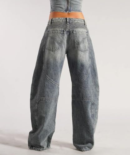More information about Women's Vintage Low Rise Stretchy Washed Wide Leg Jeans Casual Baggy Distressed Straight Denim Pants