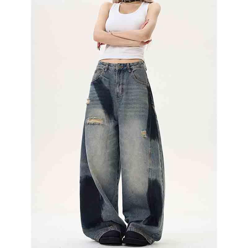 More information about Women's Patchwork Torn Hole Spray Painted Vintage Jeans Y2K Loose Wide Leg Hanging Feeling Long Pants