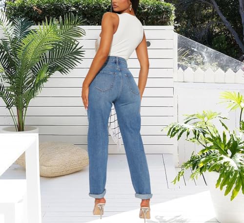 BessCops Women's Boyfriend Jeans Stretchy Ripped Distressed Denim Mom Jean Pants 6