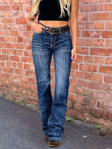 • Style: Mid-rise jeans, natural waist, Vintage look,functional pockets, convenient zipper fly, bootcut leg create the fit you like