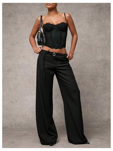 More information about GORGLITTER Women's Low Rise Waisted Dress Pants Wide Leg Straight Trousers Work Slacks Pants Business Casual Outfits