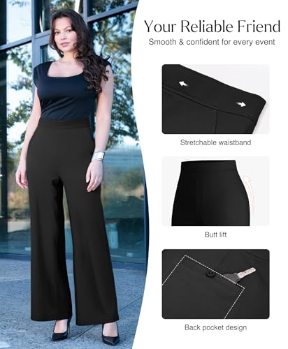 • HIGH WAISTED WIDE LEG: Work pants women flowy, high-waisted cuts elongate legs, while stretchy waistbands adapt to your shape. Womens dress pants pair with bodysuits, or shirts for office chic or weekend ease. Whether you're petite or curvy, these womens pants dressy casual create a elongated silhouette