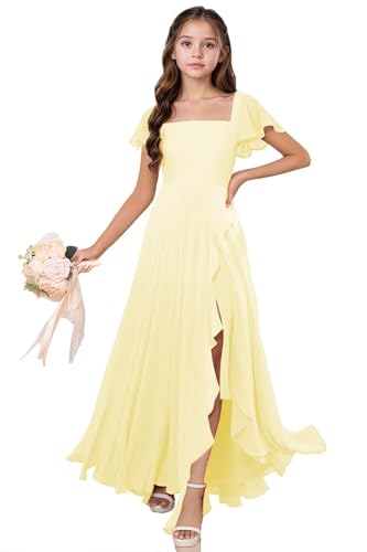 • Features:Short sleeve junior bridesmaid dress for teen girl,chiffon flower girl dress,square neck wedding party pageant gowns,first communion dress for girls,girls formal dress with slit,floor length.This dress will make your little girl the centre of attention.