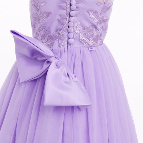 • Flower Girls Long Lace Bowknot Wedding Party Dress: Little big girls embroidery lace flower wedding bridesmaid pageant formal party long maxi dress, sweet junior princess first communion birthday dance prom ball gown floor length flare a-line puffy tulle ball dresses, elegant and gorgeous summer sleeveless V-neck V-backless bowknot dresses for 5-14 year-old baby kids toddler teen girl