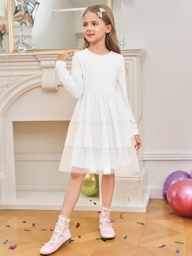 Haloumoning Girls Tutu Dress Kids Long Sleeve Fall Winter Tiered Formal Party Tulle Dresses 5-14 Years 5