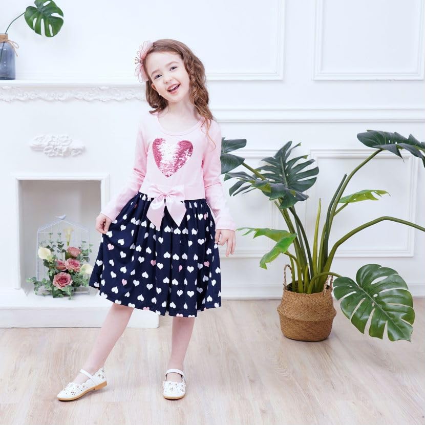 HOT ! VIKITA Girls Dresses Pink Winter Clothes Sparkling Long Sleeve Outfits for Little Kids 2-12 Years