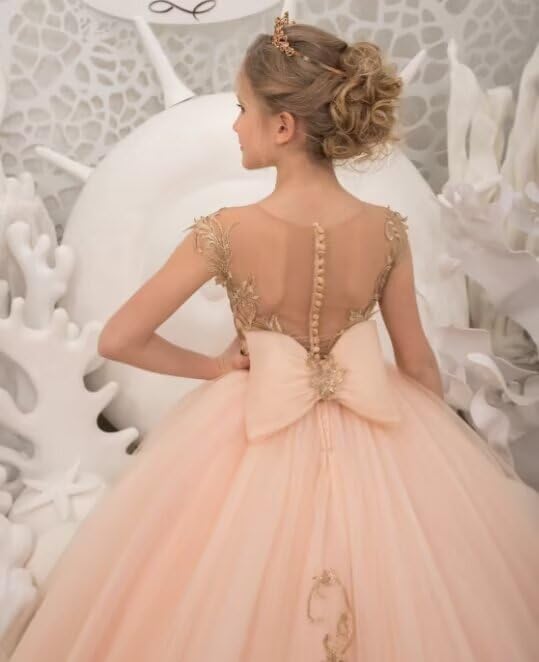 • Flower Girls Tulle Ball Gowns with Bow-Knot Kids Ball Gown Appliques First Communion Dresses Tutu Pageant Dress Princess Girls Wedding Party Dresses