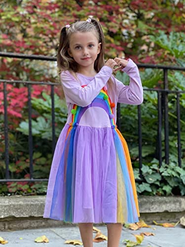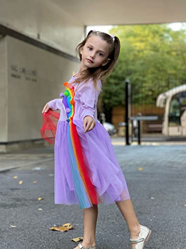 Girls Dress Long Sleeve Girl Rainbow Birthday Tulle Dresses Fall Winter Outfit 3-7 Years 5