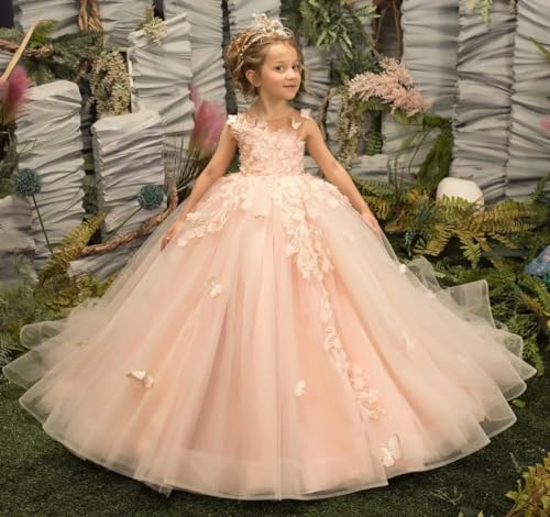 • Features: Lace Applique Flower Girl Dress for Wedding,Tulle 3D Butterfly Princess Brithday Gowns,Puffy,Trailing,Tulle Round Neck.