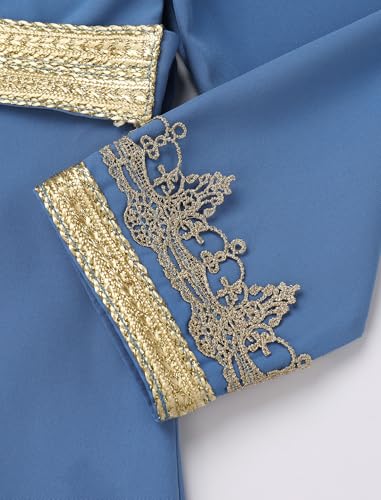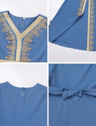 More information about OBEEII Girls Muslim Ramadan Abaya Kids Long Sleeve V Neck Lace Prayer Dress Middle East Arabic Kaftan Dress with Belt